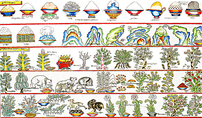 青藏高原地域的遼闊和自然條件的復(fù)雜多變,決定了它豐富多彩的動植物資源。據(jù)多年來調(diào)查采集的標(biāo)本和搜集的資料統(tǒng)計,已入藏藥的植物計有191科682屬2085種。其中菌類植物5科5屬50種;地衣類4科46種;苔蘚類5科5屬5種;蕨類30科5屬5種裸子植物52屬47種植3變種;被子植物131科581屬1895種141變種。此外,尚有動物藥57科111屬159種,礦物藥50余種。常用藏藥中有三分之一用藥與中藥相同。藏區(qū)本地草藥占常用藏藥一半以上。